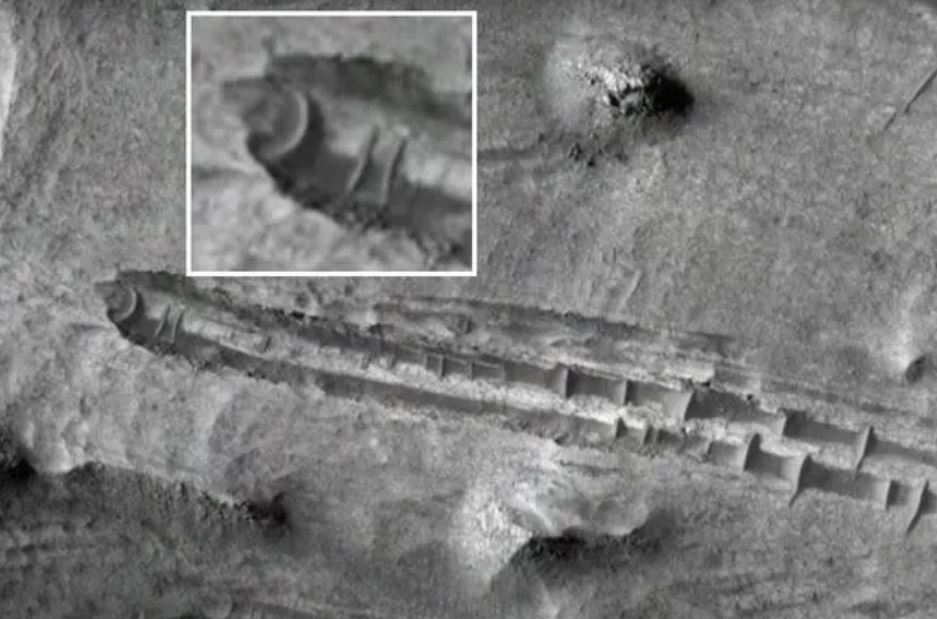 On voit même les coups de patins successifs qui ont accumulé de la régolite sur la trainée....