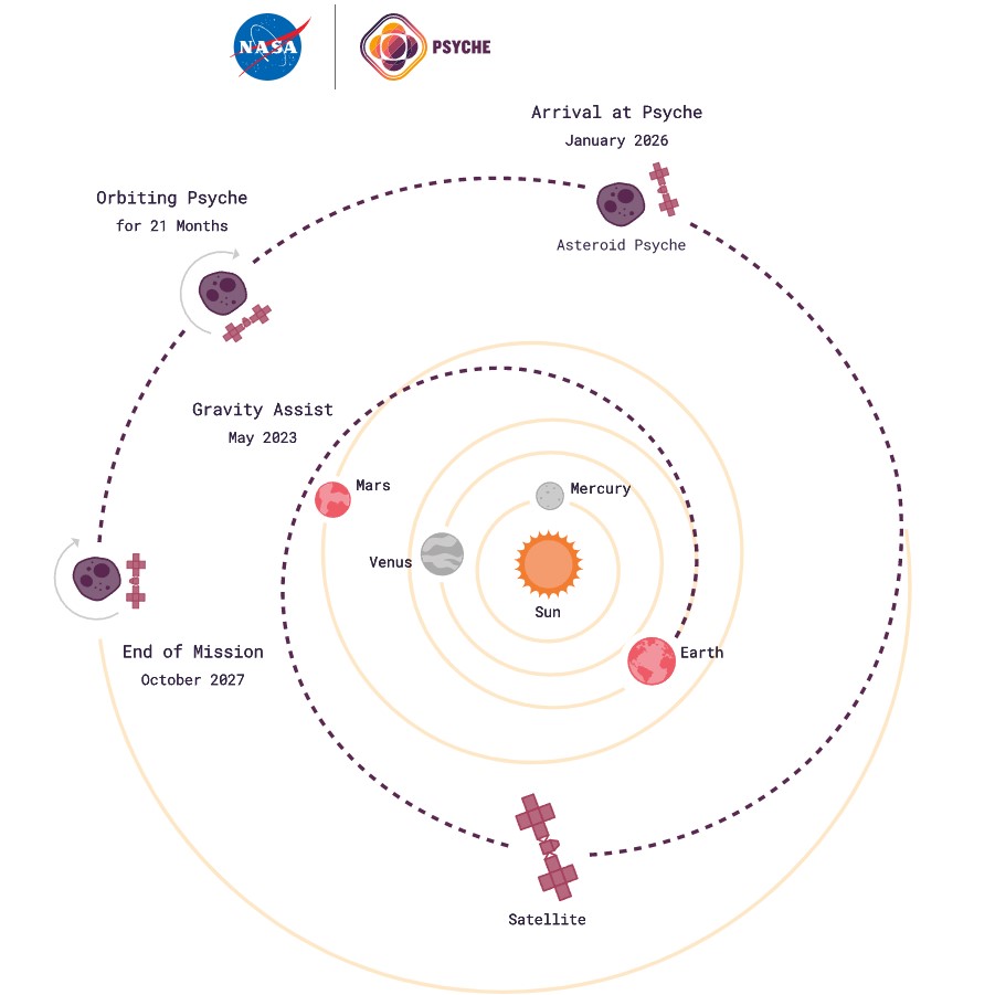 La mission partira mi 2022 et sa programmation est : Il passera 21 mois sur 4 orbites de plus en plus rapprochée. Le vaisseau spatial sera équipé d'un spectromètre à rayons gamma et à neutrons, d'un imageur multispectral, d'un magnétomètre et d'un système de radiotélécommunications en bande X. La mission Psyche testera également une nouvelle technologie de communication laser sophistiquée, appelée Deep Space Optical Communication (https://www.nasa.gov/mission_pages/tdm/dsoc/index.html et https://fr.wikipedia.org/wiki/T%C3%A9l% ... _spatiales), qui code des données en photons pour communiquer entre une sonde dans l’espace lointain et la Terre. Espérons que ce ne soit pas l'étoile de la mort (https://fr.wikipedia.org/wiki/%C3%89toile_de_la_mort)
