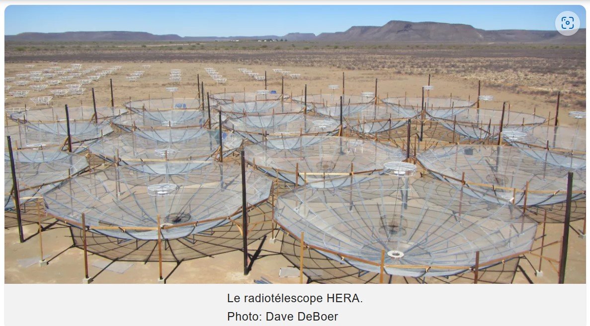 Dans le désert du Karoo, en Afrique du Sud, les 350 antennes d'un radiotélescope n'ont jamais été aussi près de détecter des traces de l'aube cosmique, période qui a suivi le Big Bang et qui a vu naître les étoiles et les galaxies.