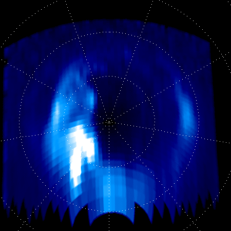 Aurore du pôle nord de Saturne vue en UV par le spectro de Cassini avant la plongée de la sonde sur Saturne.