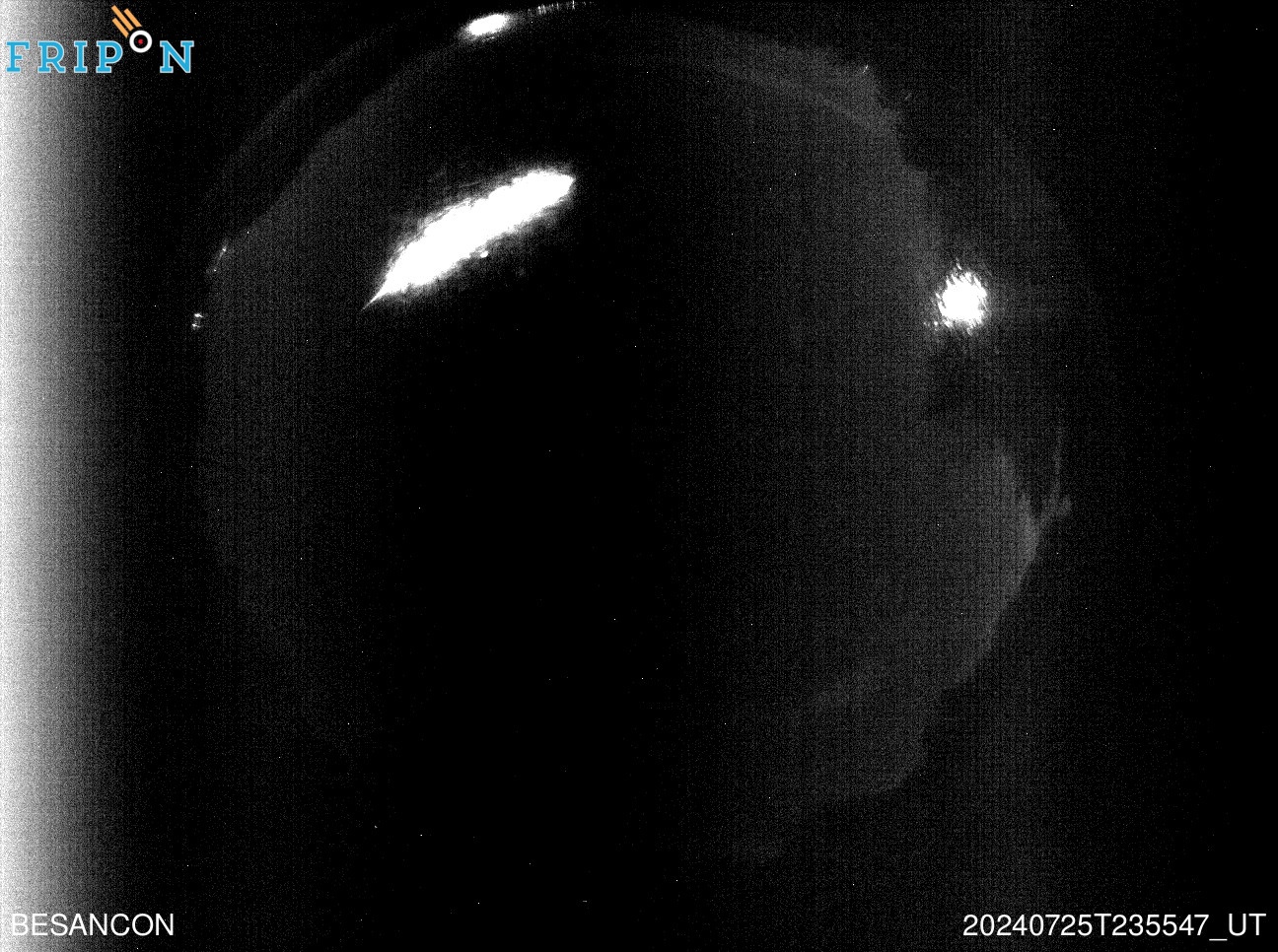 Vendredi 26 juillet à 1h55 du matin, un bolide particulièrement spectaculaire a été aperçu dans le ciel de la moitié est de la France et par 10 caméras Fripon. Il est possible qu'une météorite d'environ 100 g soit arrivée au sol, quelque part au nord de Dole. Il n a malheureusement pas été possible de déterminer une zone de chute précise.