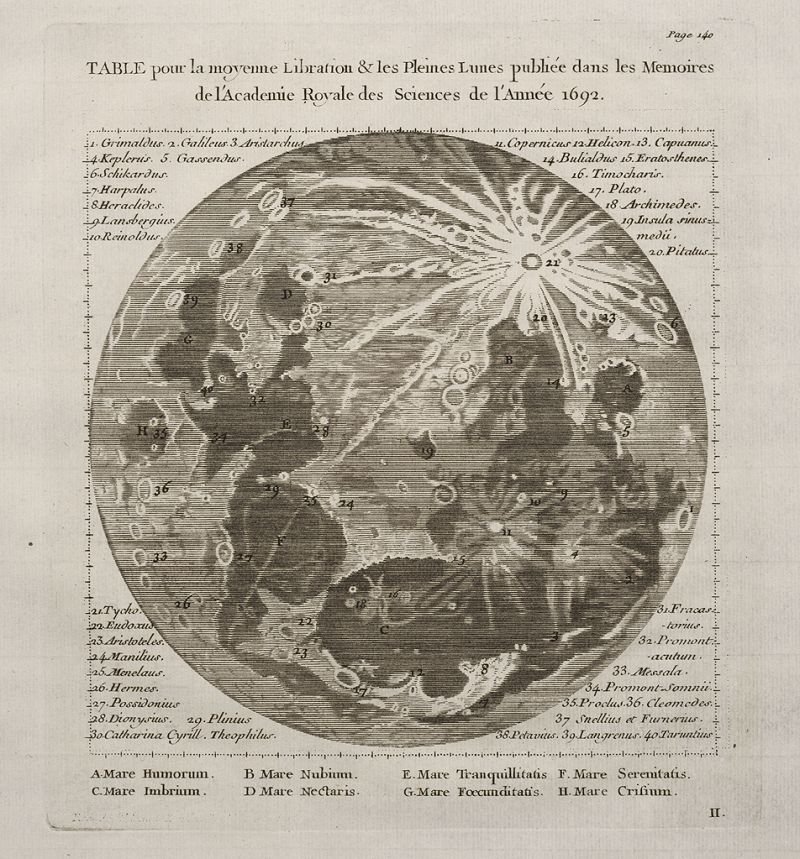 Image source: Cassini, Giovanni Domenico. "Table pour le moyenne Libration & les Pleines Lunes," in: Keill, John. Institutions astronomiques. Paris: Chez Hippolyte-Louis Guerin, & Jacques Guerin, 1746, p. 140, pl. 2. >>