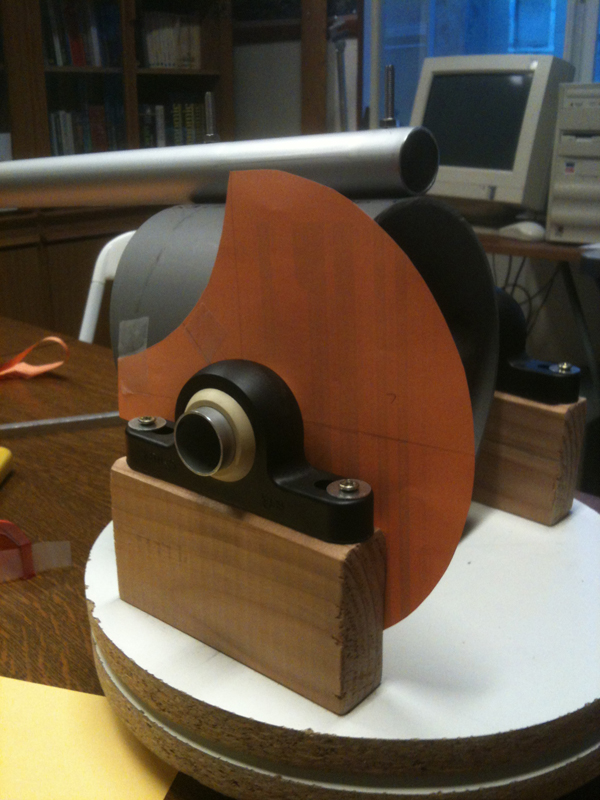 Jean-François nous a conçu un dispositif, avec une pièce qui sera pincée contre le support et freinera par frottement.