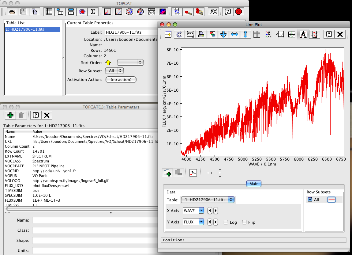 Il y a aussi l'application TOPCAT qui permet de tracer et aussi de convertir les fichiers (le format privilégié des astronomes s'appelle FITS, il permet de stocker images, spectres, et toutes sortes de données ; TOPCAT permet de les convertir en fichiers texte).