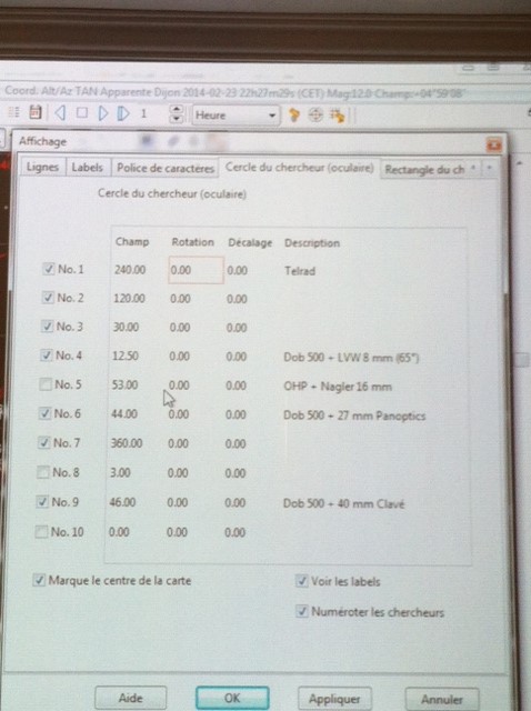 On a donc mis en pratique le calcul du champ observé avec les oculaires du 500.