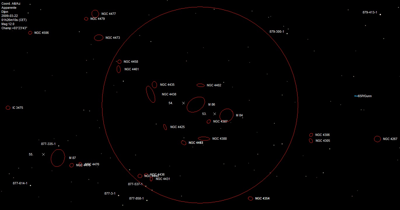 Les neufs galaxies dans le champ -> D'aillerus, pour prouver que ce n'est pas du pipeau, je les ai retrouvées, c'est le groupe M84, M86, voir carte.