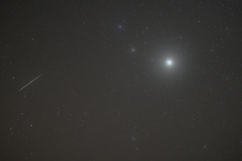 Géminide, Castor, Pollux et Jupiter, depuis l’OHP en décembre 2025. J. Vaubaillon, LTE, Observatoire de Paris.