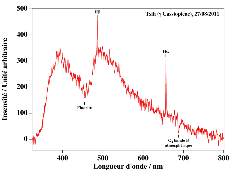 Tsih, alias Gamma Cassiopeiae, pas terrible, un peu par ma faut. J'avais essayé la soustraction "au vol" du dark par le logiciel. mais ça ne va pas bien, car ce dark n'était pas assez moyenné. On a donc un spectre très bruité, et je n'ai pas de moyen d'enlever ce bruit.