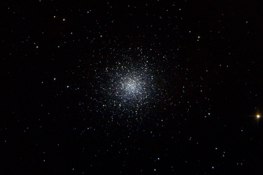 Bon, M13 c'est une belle cible pour les essais de tracking. Pour mes travaux de photométrie je ne veux pas du guidage, une demi-douzaine d'observations de 10 minutes chacune et au moins autant pour lancer un guidage à chaque fois, pas drôle ! En plus un trop bon guidage ce n'est pas bon pour l'échantillonnage de la Bayer mais aussi pour les darks / flats dont le bruit et autres défauts deviennent corrélés !
