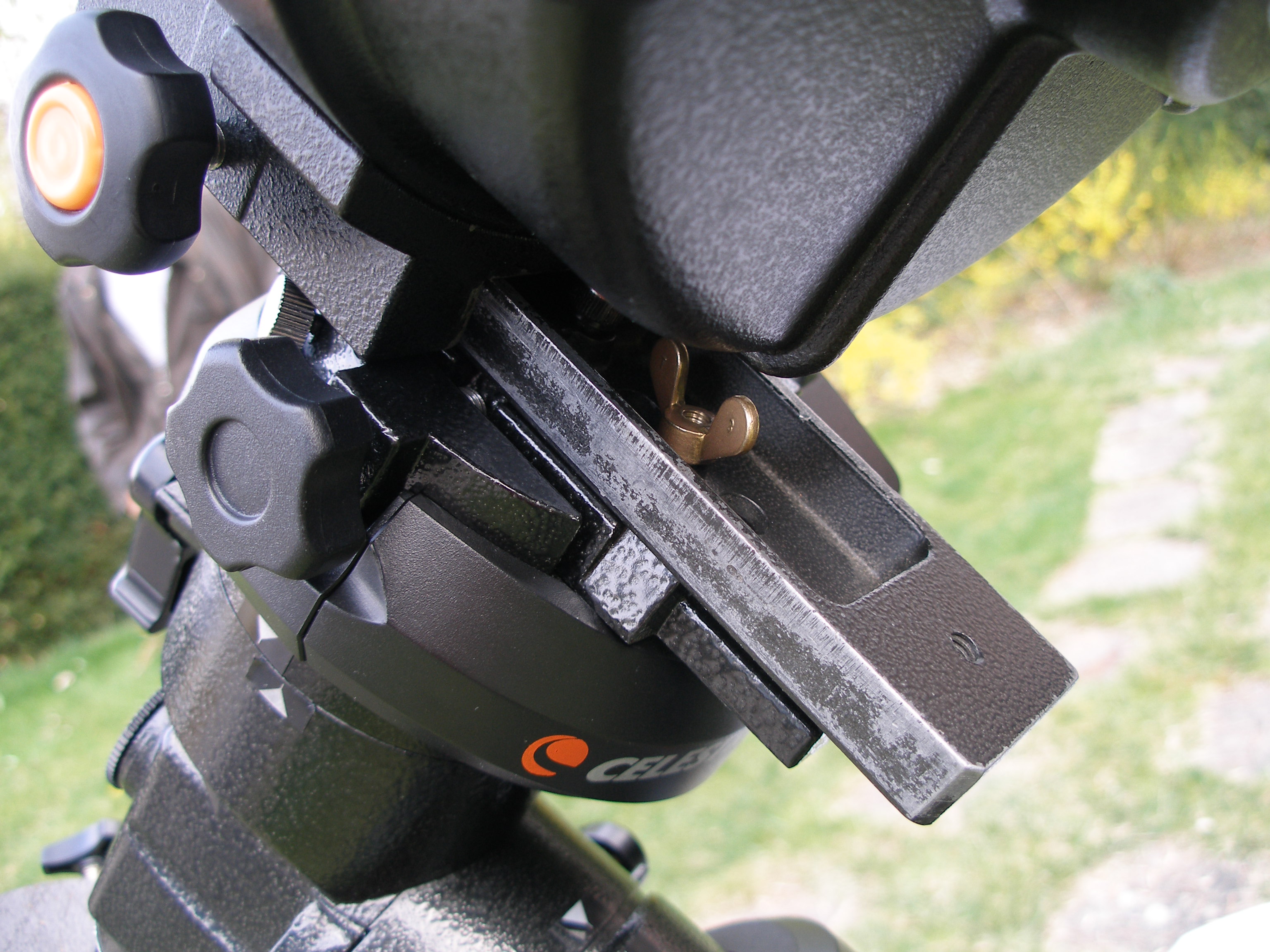 A la SAB, on sait bricoler ! La preuve, ce montage audacieux pour faire tenir un vieux C8 sur la monture récente de Chris à l'aide de deux clés d'aronde et d'une vis papillon judicieusement placée (je pense à breveter ça :D ) :