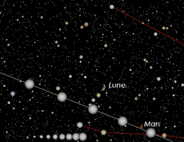 L'ISS passe tout près de Mars et à proximité de la Lune à 17h27.