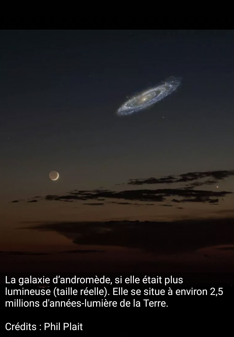 Non ça ne m'étonne pas trop, la galaxie mesure 189' x 60' soit 3 degrés de large donc 6 fois la Lune. C'est à peu près ce que montre ce montage.