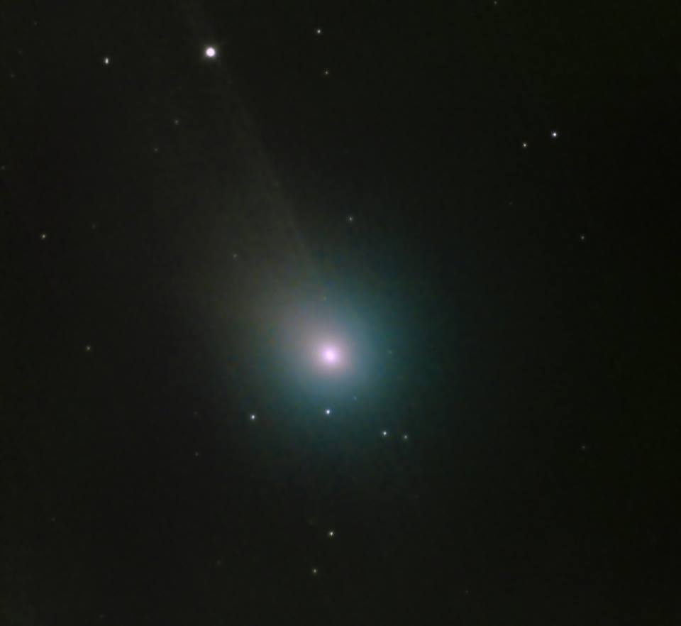 Estimation visuelle faite par Nicolas Biver (Observatoire de Meudon - CNRS) à mag. 6,5 dimanche soir. Bien visible aux jumelles, queue très discrète au télescope.