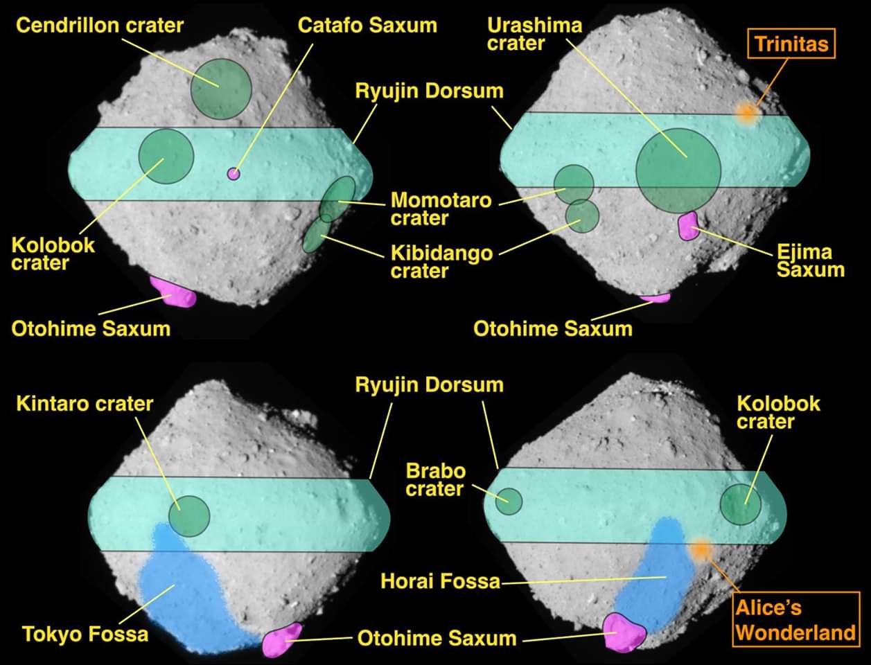 13 sites nommés sur Ryugu