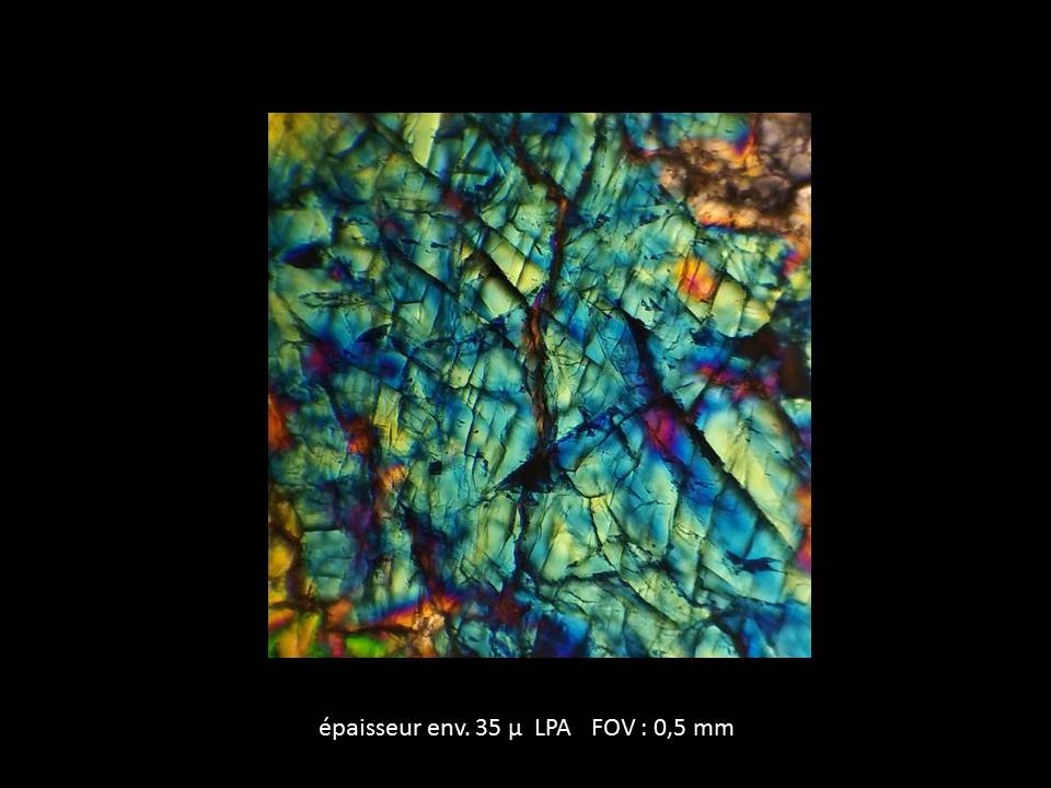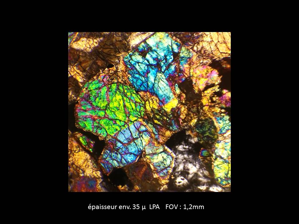 Voici quelques images de ma dernière lame mince. Un gabbro lunaire riche en olivine, ce qui donne un festival de couleurs !