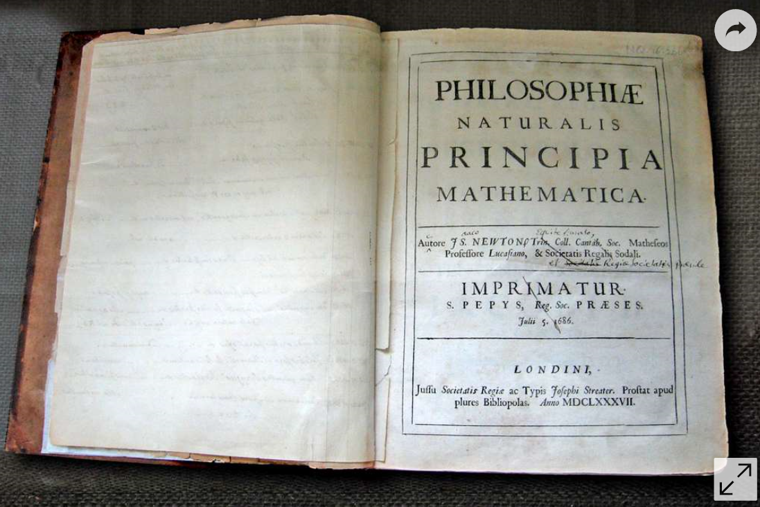 L'œuvre maîtresse d'Isaac Newton publiée en 1687 dans laquelle il expose ses trois lois du mouvement.