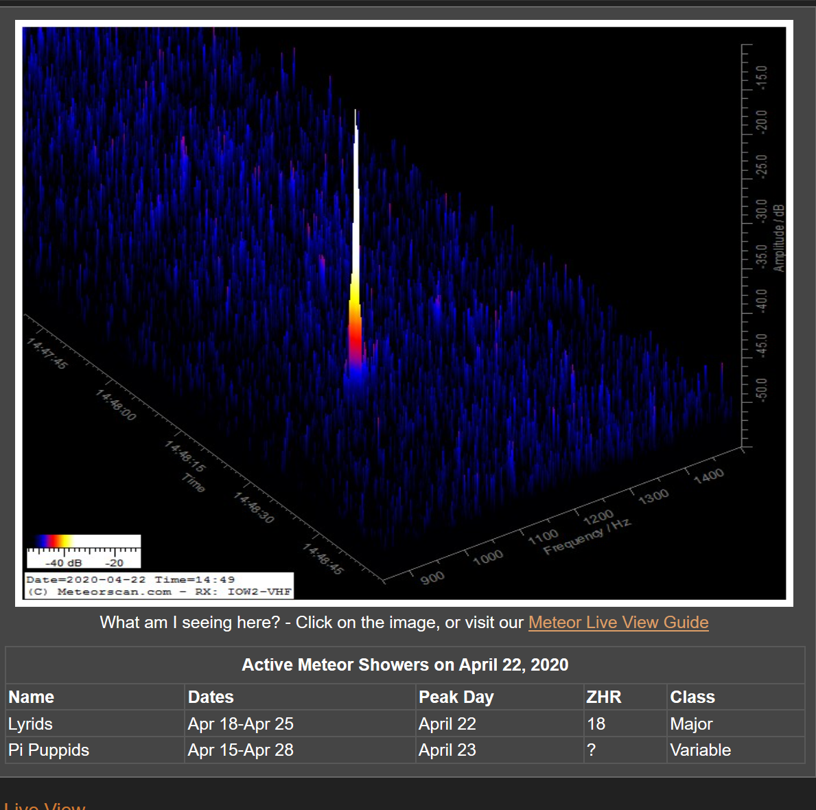 Pour ceux qui voudraient suivre les échos radar des Lyrides et autres météores voici un site : http://www.meteorscan.com/meteor-live.html