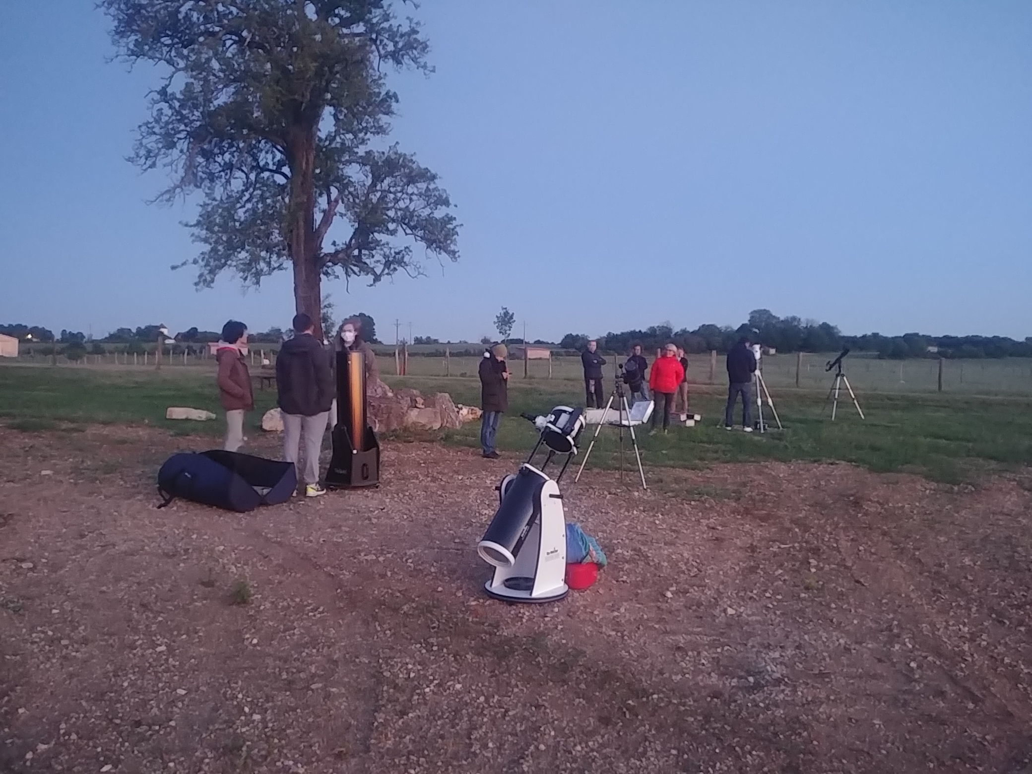 Il y avait Samuel avec son télescope, Raoul et Léandre (avec Jeremy le papa) tous deux avec des Dobson, Garance accompagnée de sa maman et de sa sœur Apolline, Alexis et nous (F&H) avec nos lunettes astro.
