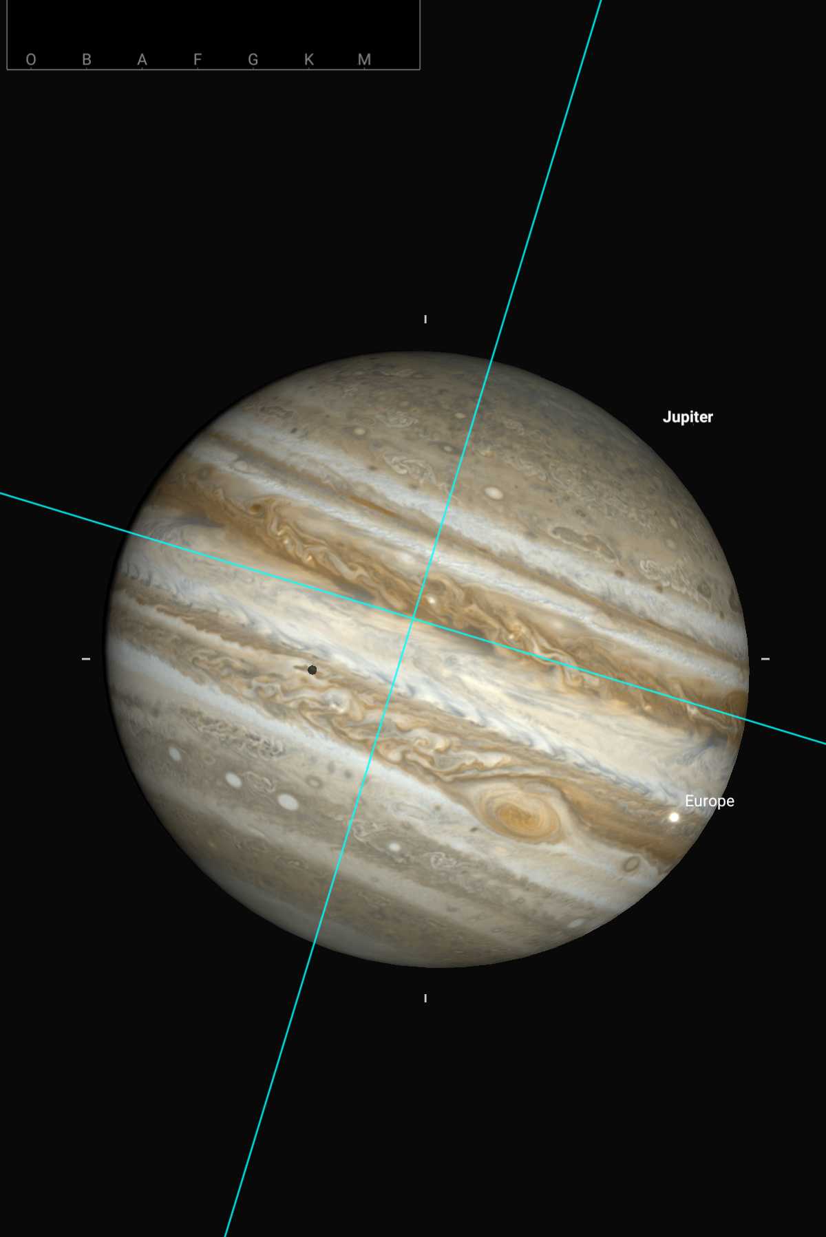 Et cerise sur ce magnifique gâteau un petit point noir que j'ai pu voir se déplacer petit à petit sur la planète ==> en plus des observations précédentes, nouvelle première : : une ombre !!! Du coup grosse question : comment savoir à qui elle appartient ? Ayant vu, il me semble, 3 satellites au début puis 4 sur la fin, lequel a donné cette ombre ?