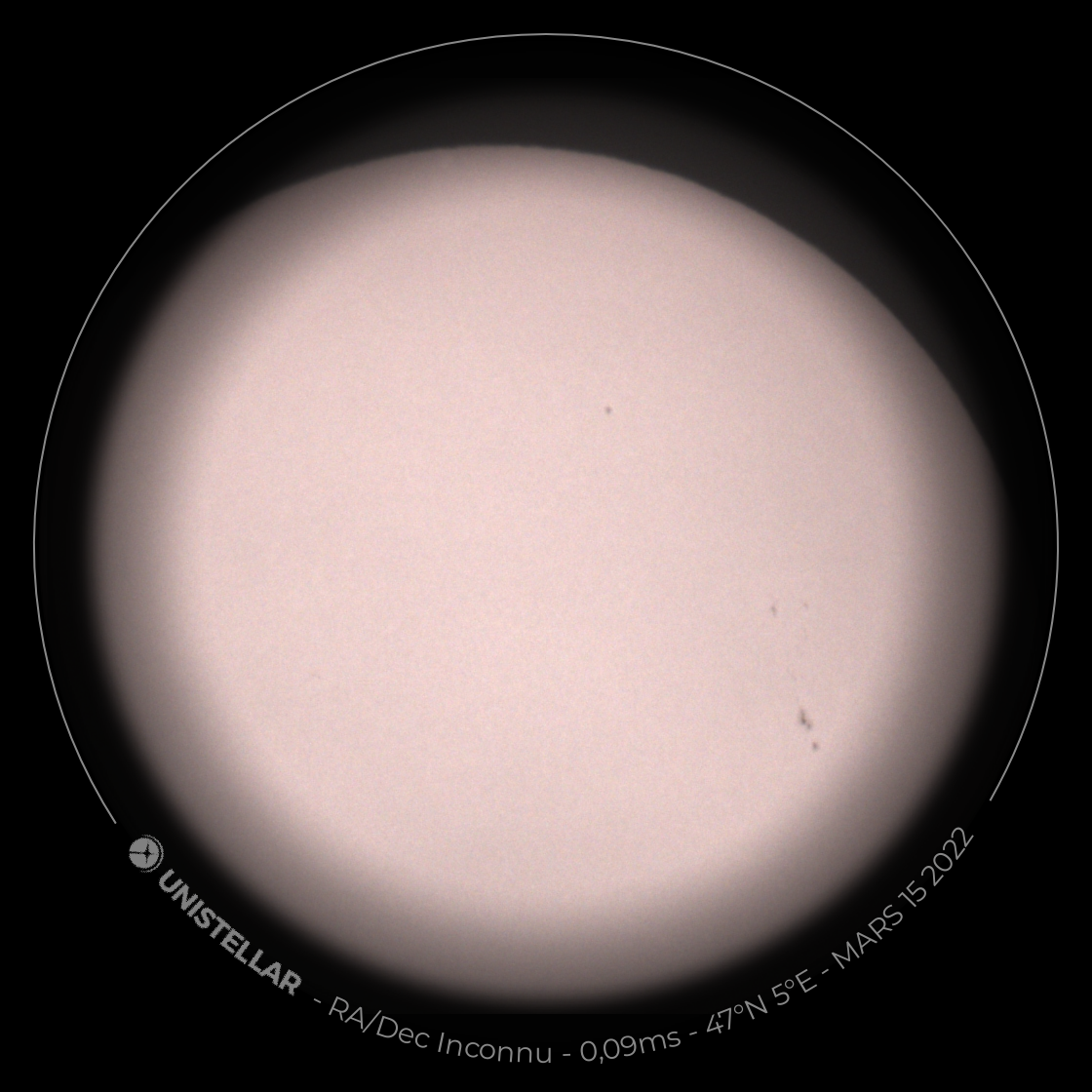 Avec le vent du sud apportant un nuage de sable du Sahara, le soleil était observable avec un instrument sans filtre dans des conditions de sécurité optimum