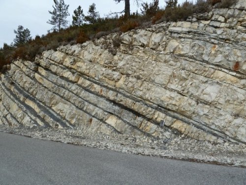 (Angles, Alpes de Haute-Provence). Chaque alternance représente un cycle de précession de 20 000 ans.