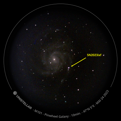 De retour en Bourgogne, observation de SN 2023ixf dans M 101 galaxie du Moulinet ("Pinnwheel"). Découverte le 19 mai, mes premières observations à partir du 22 mai .