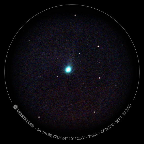 Comète découverte en août, annoncée comme importante, c'est-à-dire visible à l'oeil nu, pour septembre c.f. liens ci-dessous.
