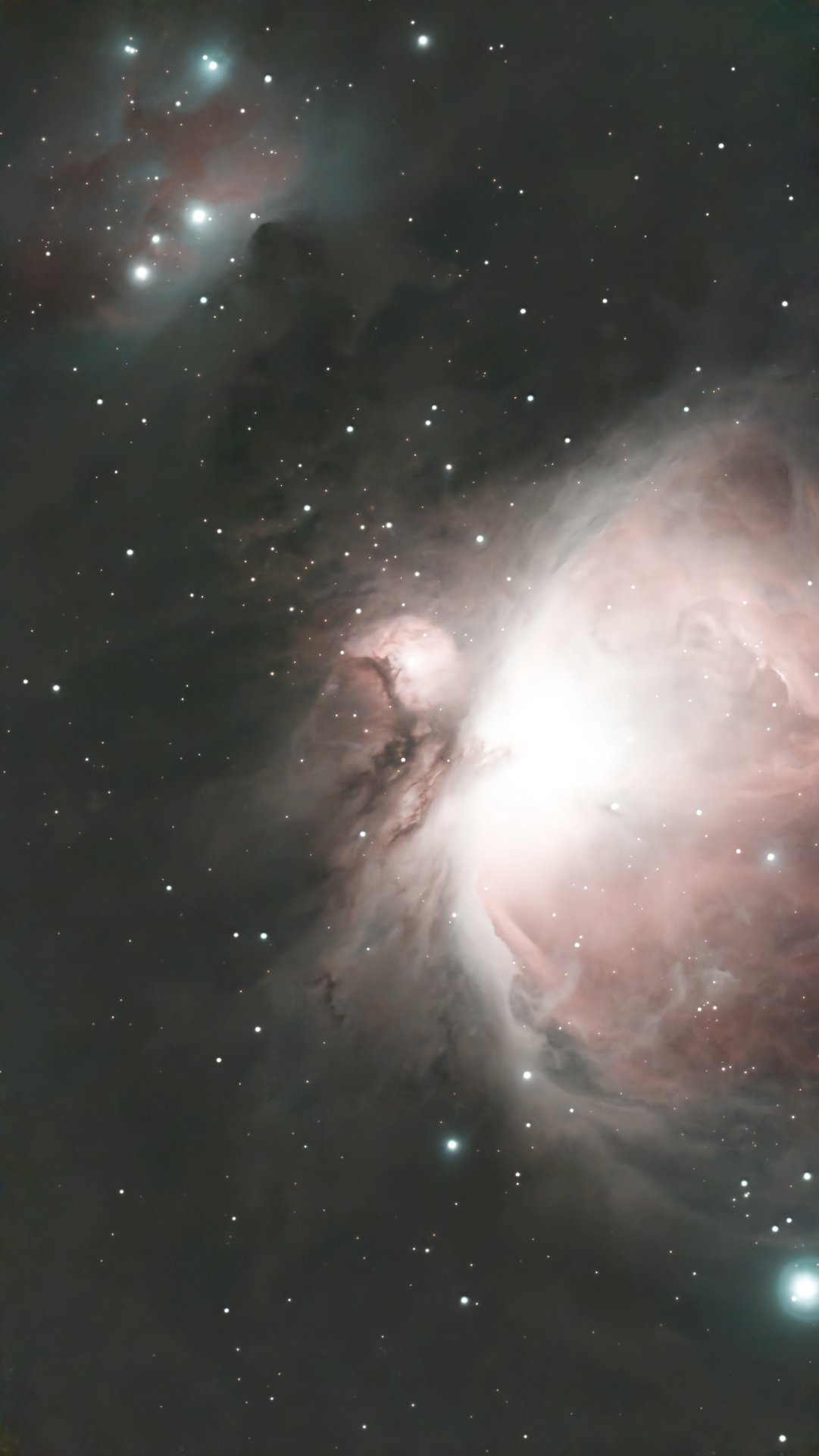 Une acquisition du cœur de M42 Grande Nébuleuse d'Orion de 1 h 03 min (378 poses de 10 secondes).