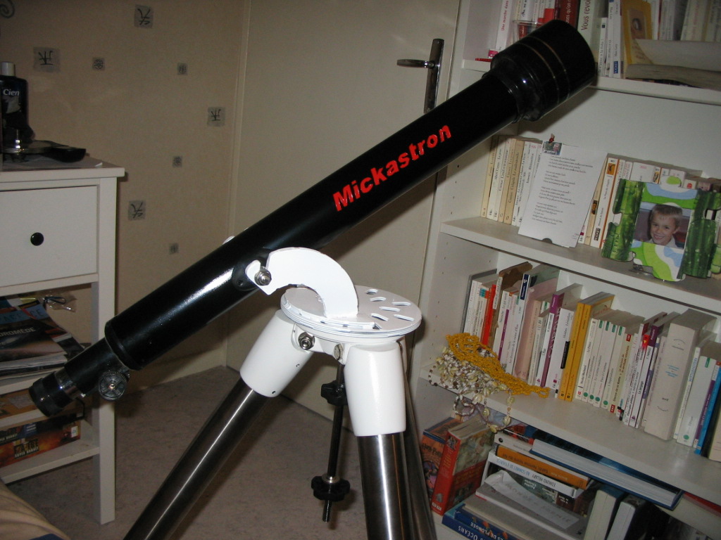 Je lui est fait quelques petites modifications maison, comme le "baflage interne ( qui à supprimé tous les reflets parasite ) suppression du support "micrométrique" du support du chercheur, (je lui fixerais plus tard un chercheur point rouge)fabrication de 2 nouveaux systèmes de fixations, pour la nouvelle monture, puis une petite touche de peinture personnalisée .