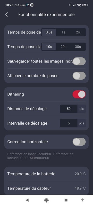 A priori , on peut accéder à un menu caché, dans l'écran de réglage, appuyer 5s sur "mon Seestar"