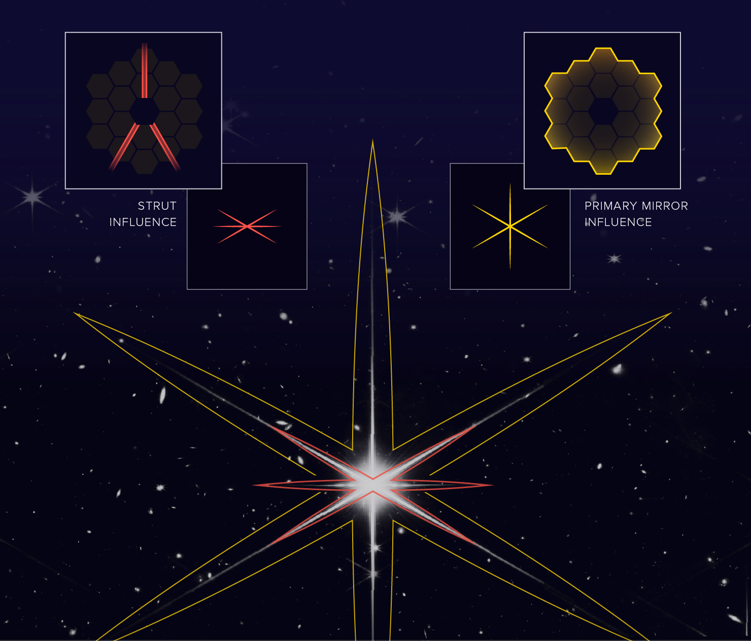 L'explication des 8 aigrettes sur les étoiles dans les images NIRCam du JWST :