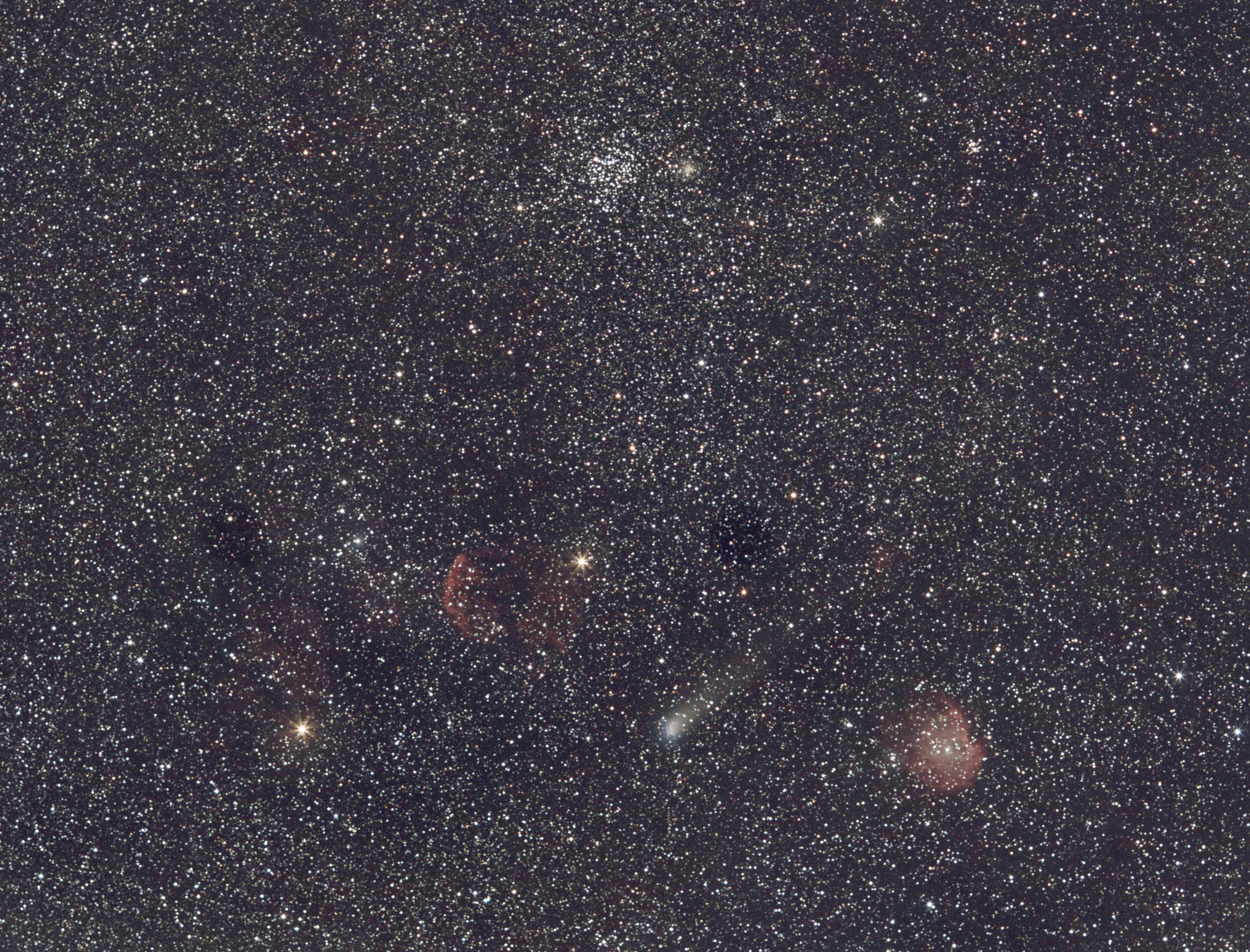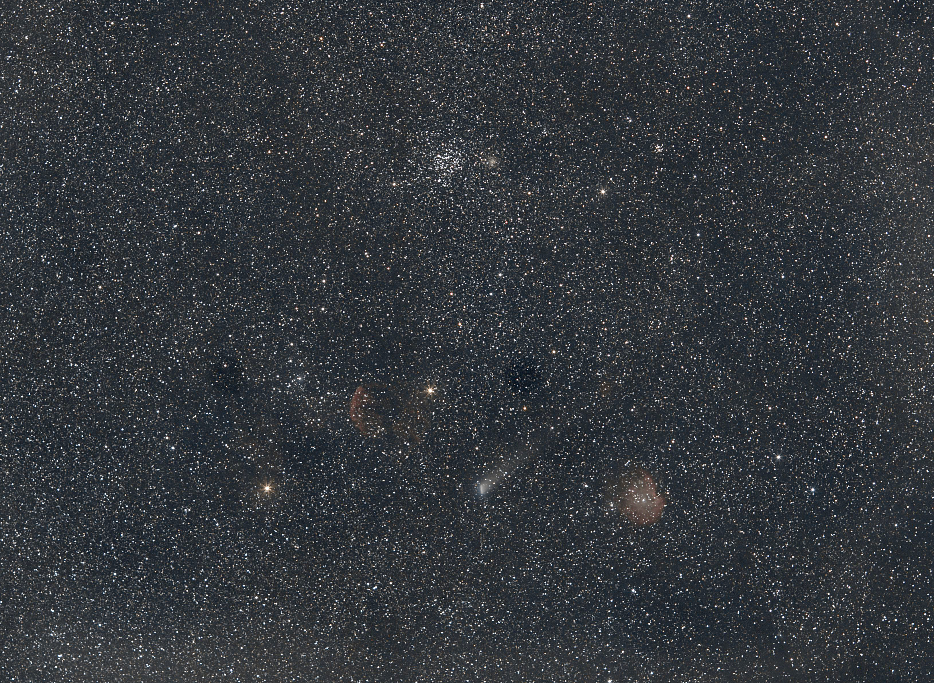 J'ai fait quelques acquisitions de la comète 21/P Giacobini Zinner il y'a 2 ou 3 jours avec l'eos6D et le 135 f/2. mais je n'ai pas eu le temps de traiter les bruts. J'essaierai de traiter les images sous pixinsight demain. J'ai utilisé une star aventurer, donc pas de guidage.