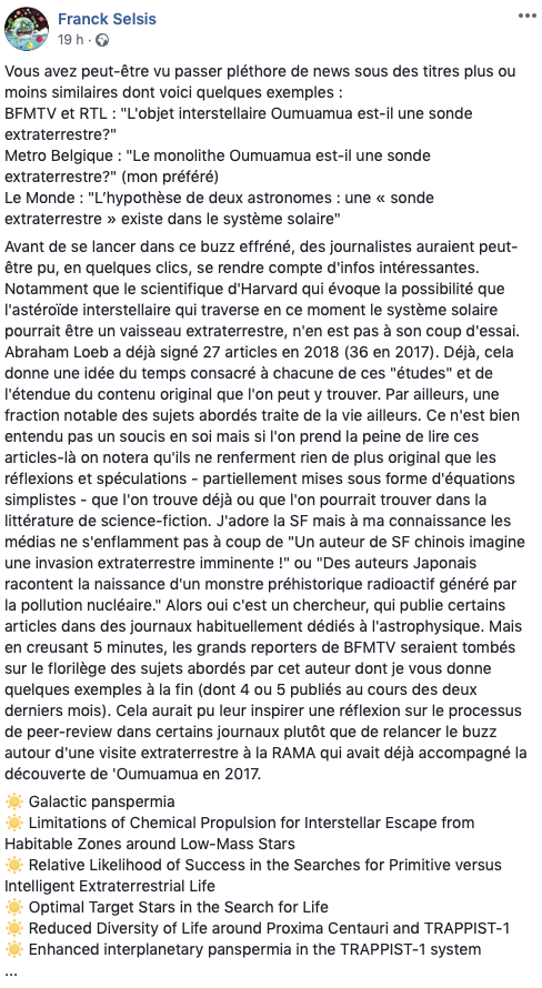 Quelques commentaires un tantinet agacés, mais bienvenus, de mon collègue Franck Selsis !