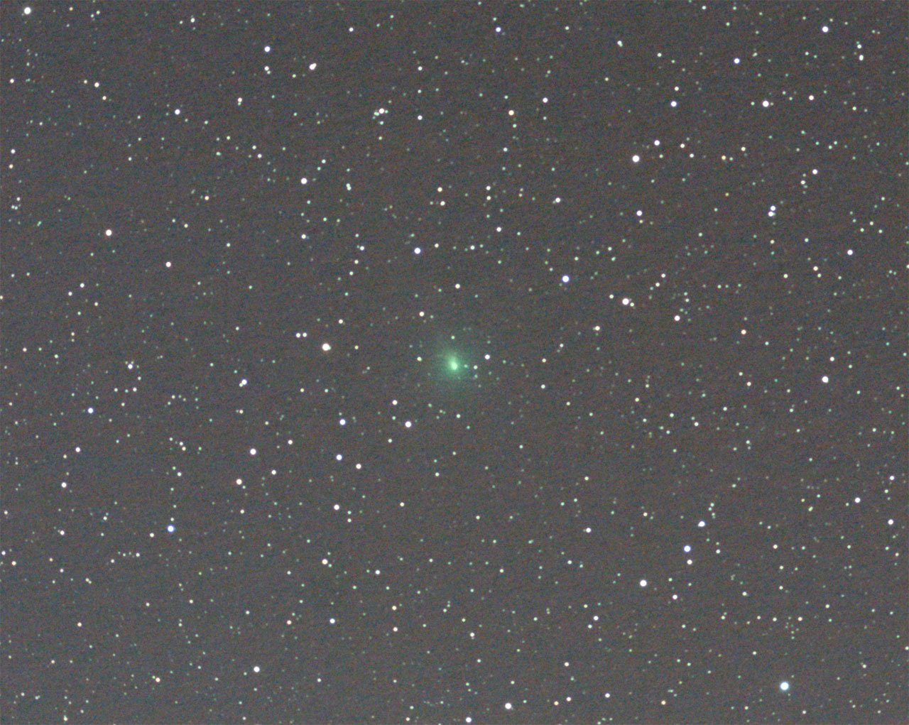 Je cite "Sur le plan technique, j'avais placé au foyer de ma lunette Takahashi FS-60CB (focale 355 mm) l'APN Canon 350D de René, dont c'était là la 1ère utilisation en ciel profond. L'image ci-jointe a été réalisée à partir de 16 poses individuelles de 1 mn chacune à 800 ISO, empilées et traitées par darks, flats et offsets selon la procédure habituelle, avec le logiciel DeepSkyStacker. J'ai ensuite ajusté les courbes de luminosité avec Photoshop CS2"
