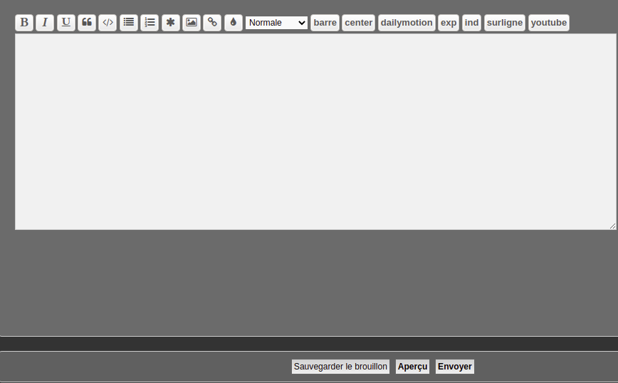 Oui pour envoyer une vidéo Youtube, il suffit de mettre son adresse entre les bornes qui apparaissent lorsque tu cliques sur le bouton youtube à droite.
