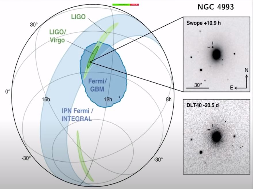 Le résultat est GW170817, une nouvelle étoile à neutron. Cela s'est produit dans NGC 4993. Sur cette photo on voit, 10,9 heures plus tard, l'apparition de GW170817.