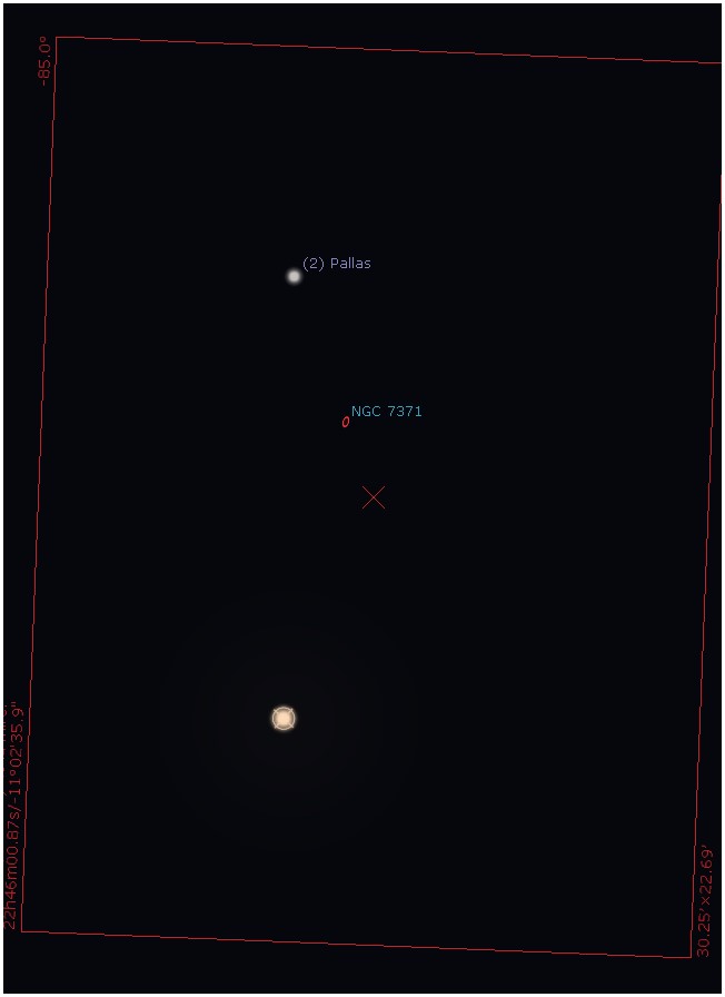Pas beaucoup d'écart, il est dans le coin, mais c'est si difficile de connaître les positions exactes des astéroïdes ? Pourtant Pallas est assez gros !