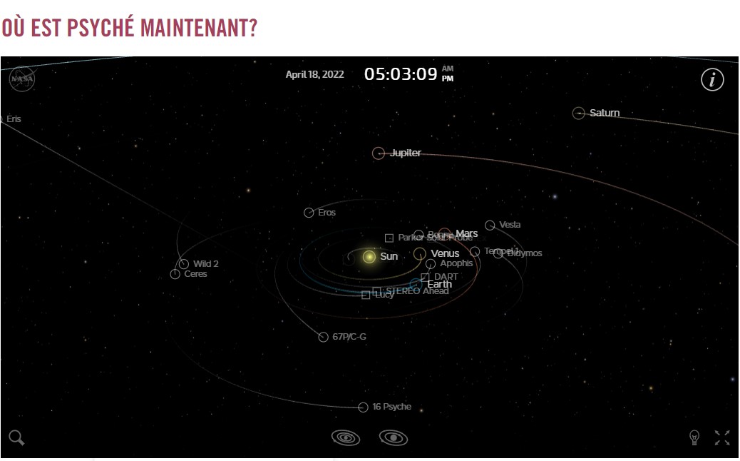 La mission Psyche testera également une nouvelle technologie de communication laser sophistiquée, appelée Deep Space Optical Communication (https://www.nasa.gov/mission_pages/tdm/dsoc/index.html et https://fr.wikipedia.org/wiki/T%C3%A9l% ... _spatiales), qui code des données en photons pour communiquer entre une sonde dans l’espace lointain et la Terre.