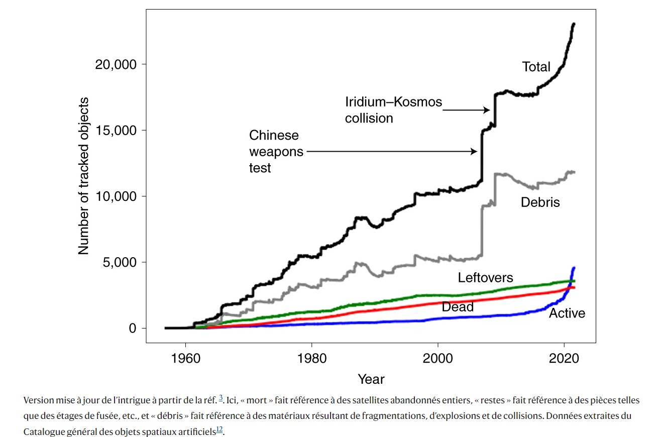 - Mais les satellites actifs d’aujourd’hui doivent encore éviter les objets qui ont été lancés il y a des décennies et qui se sont depuis fragmentés.