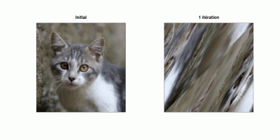 Mais alors, que vient faire le chat dans cette histoire ? On peut aussi appliquer cette transformation à une image de N x N pixels (x et y devenant des entiers dans ce cas).