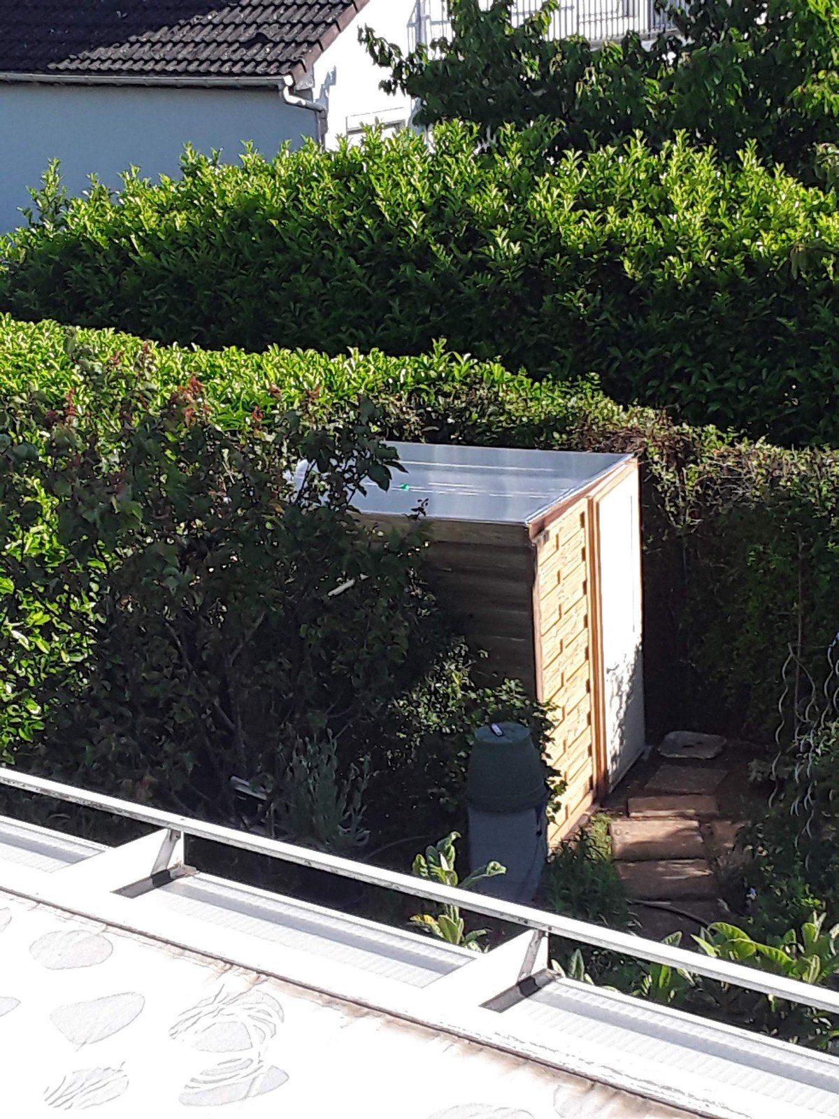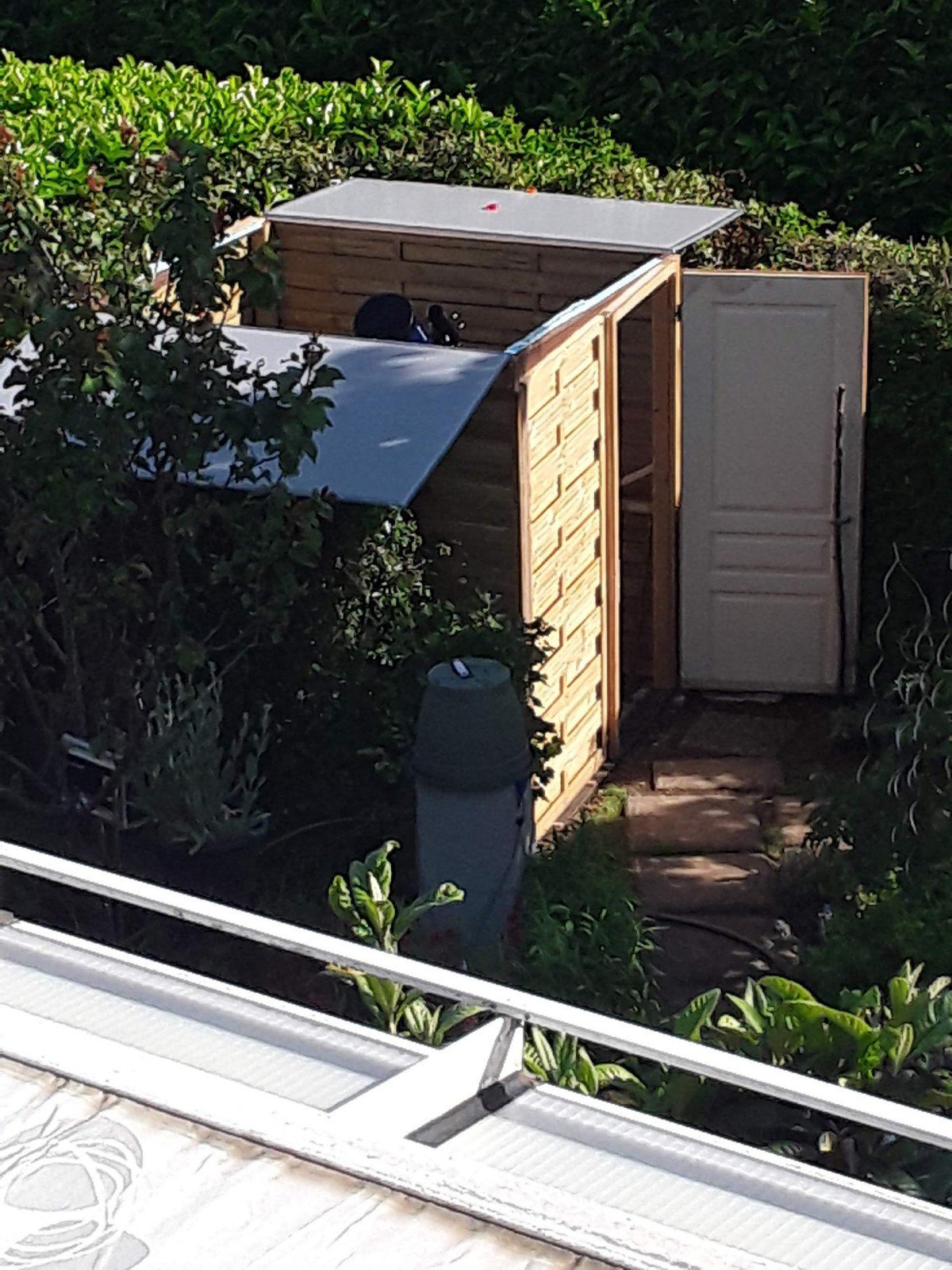 Me voici à l'objet de ce long préambule : Pour un coût global de 350 euros, j'ai construit un mini observatoire permanent de 4m² dans mon jardin. Il est quasi invisible de l'extérieur du jardin qui est sécurisé contre des visiteurs en quête de mauvais coûts.