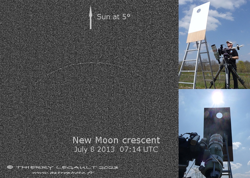 Un record du monde : le croissant lunaire le plus jeune possible, âgé de zéro jour, zéro heure, zéro minute. C'est le moment exact de la Nouvelle Lune du 8 juillet 2013 !