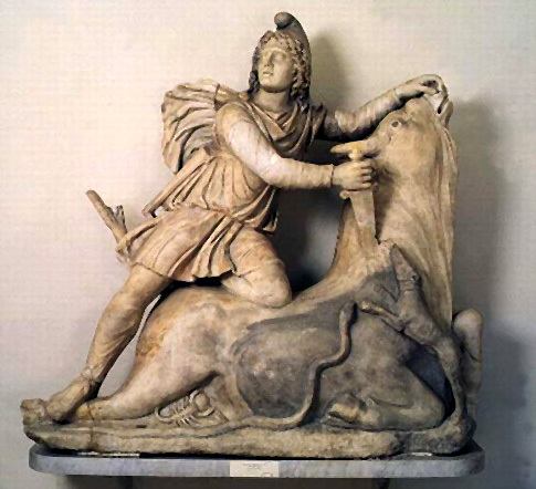 Mithra est souvent représenté en train d'effectuer le sacrifice rituel du Taureau