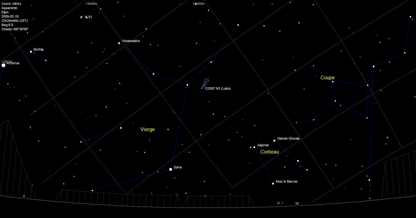 Sur la carte jointe, Cartes du Ciel nous montre une queue vers l'Ouest. Cartes du ciel montre systématiquement une queue à l'opposé du soleil, typique d'une queue de gaz.